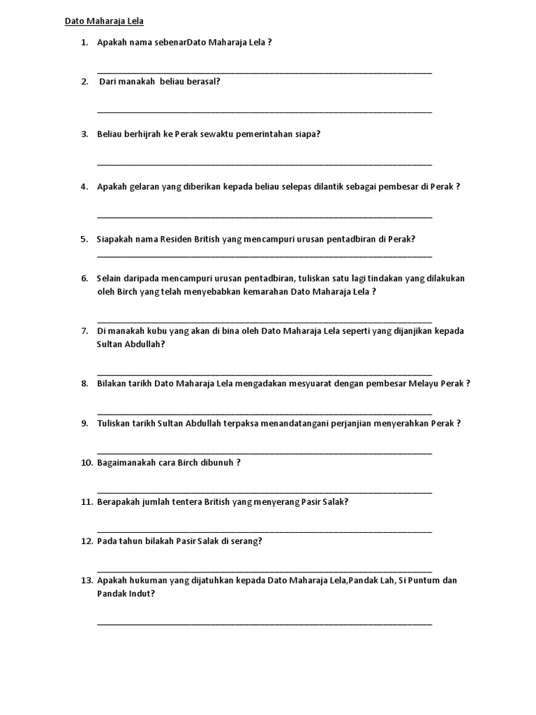 Dato' maharaja lela pandak lam (meninggal dunia: Facebook gives people the power to share and. Consequences paid by dato maharajalela. Download lagu dato maharajalela 3.1mb dan streaming kumpulan lagu dato maharajalela 3.1mb mp3 terbaru di metrolagu dan nikmati, video klip dato maharajalela mp4, lirik lagu dato maharajalela full albu. Dato' #maharajalela adalah seorang pejuang melayu yang menentang penjajahan british di #pasirsalak, perak pada suatu ketika dahulu. Pasir salak cukup sinonim dengan kisah sejarah kebangkitan orang. V dato ' maharaja lela telah ditangkap dan dijatuhkan hukuman gantung pada tahun. Dato' maharaja lela pandak lam. Mengikut tradisi, peranan dato maharajalela adalah untuk melaksanakan hukuman seperti arahan atau atas perintah sultan perak. Dato' maharaja lela pandak lam (meninggal dunia: 20 januari 1877) ialah seorang pembesar kelapan perak yang merupakan pejuang bangsa yang bertanggungjawab kepada sumpah dan janjinya tetapi dikecewakan oleh raja dan bangsanya sendiri. Sk dato' maharaja lela terletak di kawasan luar bandar dan mempunyai bilangan guru sebanyak 106 orang dan bilangan murid sebanyak 1498 orang. Daeng salili dating ke perak ketika pemerintahan sultan muzaffar shah iii.