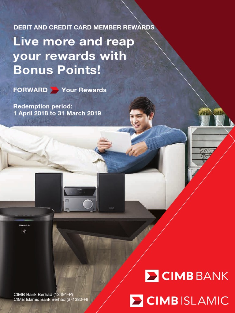 Cimb Preferred Bonus Points Rewards Programme Cimb Preferred from www.cimbpreferred.com.my Your cimb preferred membership is now even more rewarding for you. You to redeem, from the latest gadgets, household electrical, vouchers, travel essentials, and air miles! 3.8 bonus points, which have been used to redeem any gift, shall be deemed as extinguished. Cimb bonus points gives you the best conversion value of 400 bonus points = rm1 ³best bonus points conversion of 400 bonus points = rm1 offered by cimb is in comparison against other consumer banks in malaysia published as of 1 jan 2021. Kdk 16 remote control wall fan. Can i redeem my bonus points on cimb clicks mobile app? Epic redemption pay with cimb bonus points at over 9,000 outlets nationwide. Any payment of the balance value by credit card shall earn cimb bonus points and no cimb bonus points will be awarded if the cimb bonus points are used to redeem the purchase.